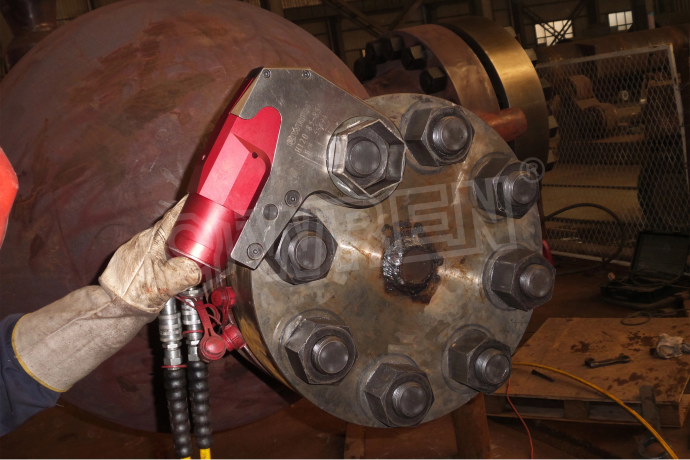4.  一致性高:配合同步液壓系統(tǒng),可同時(shí)使用多個(gè)扳手,確保在一個(gè)法蘭上的所有螺栓受力均勻一致,這是手動(dòng)工具無法實(shí)現(xiàn)的。